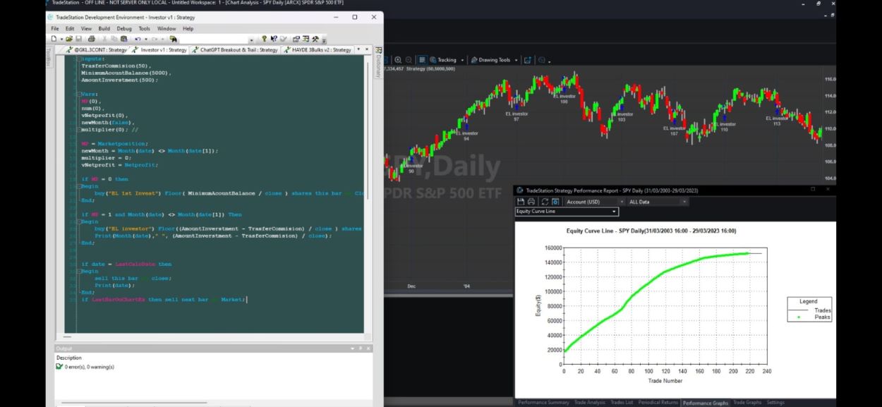 במקרה שלנו – אני משתמש בתוכנת Tradestation שהיא קלה ונוחה לתפעולה ובעלת ותק משנת 1982 הן כברוקר והן כתוכנה. לצידה מגיעה סביבת הפיתוח של שנקראת Easylanguage, סביבת עבודה ושפה מאוד קלות לייצר אסטרטגיות בזמן קצר עם עקומת למידה קלה שניתן ללמוד אותה ממני בתהליך מדויק וקפדני שיצרתי במיוחד לצורך כך.