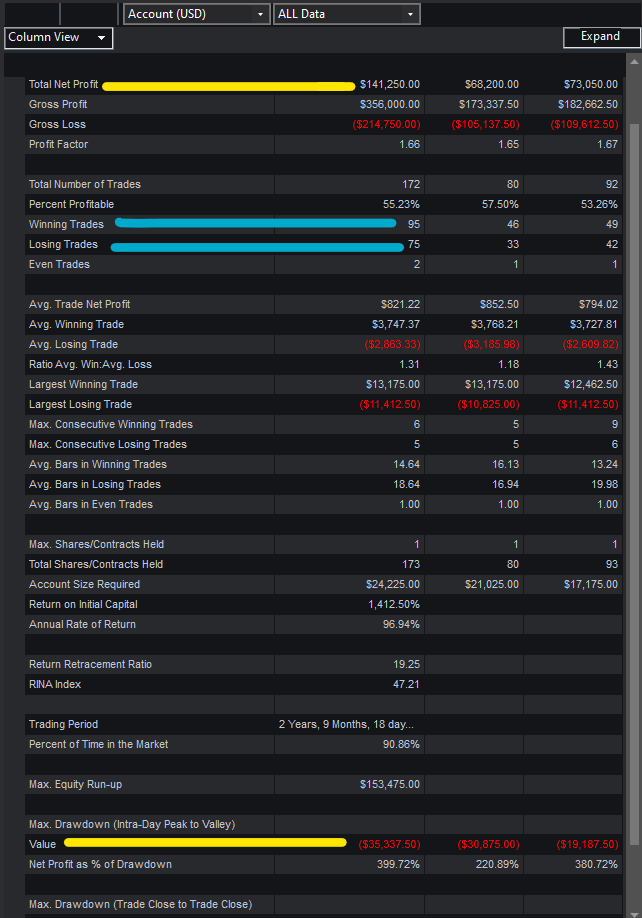 חשוב לקחת מכאן שאנחנו עוסקים במחקר רחב ככל הניתן ולא עושים ניסויים על כסף בחשבון שלנו אלא מחקר מבוסס נתונים היסטוריים. הן של דקות בודדות על פני חודשים לאחור והן של ימים בודדים על פני שנים רבות לאחור